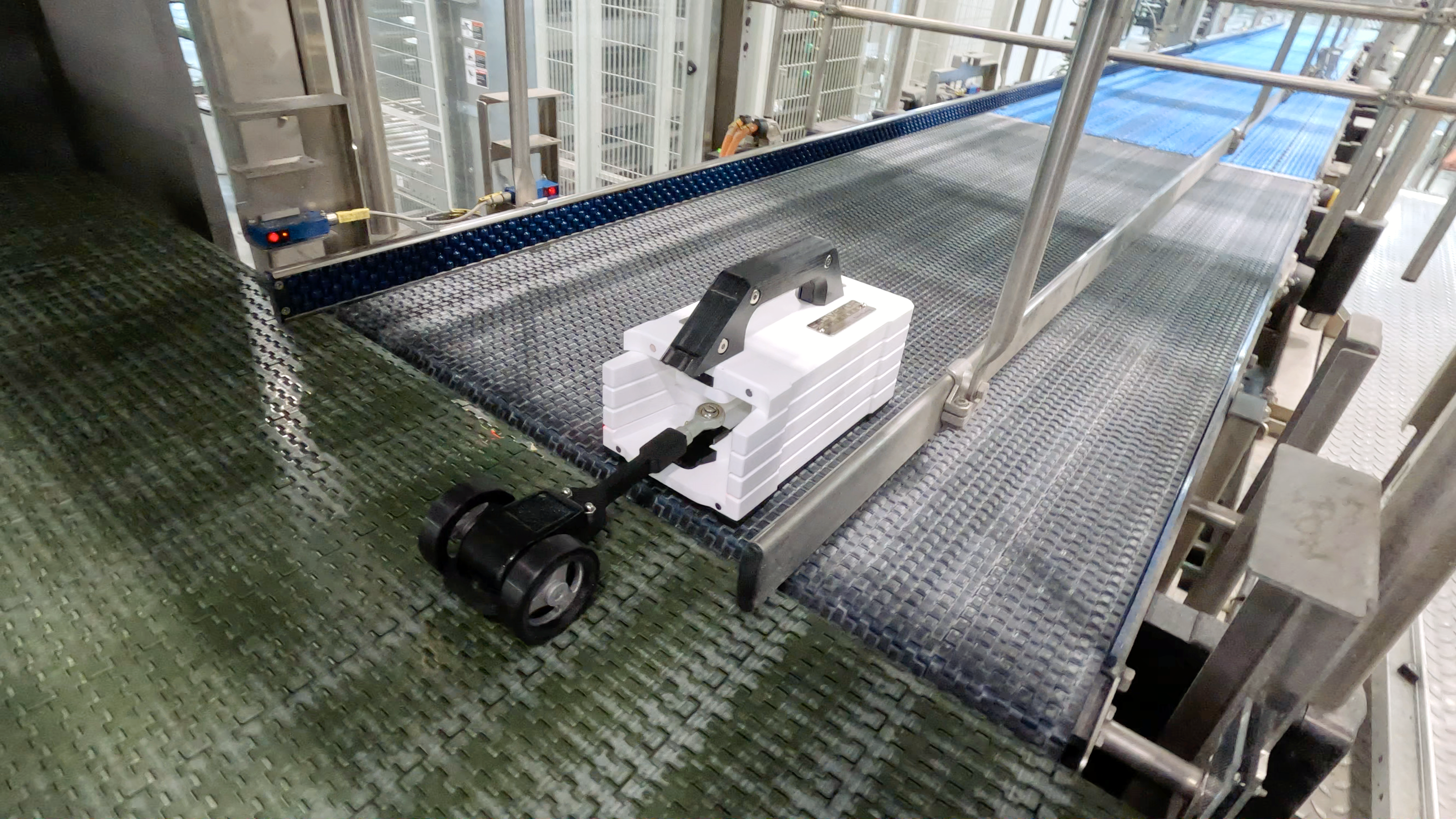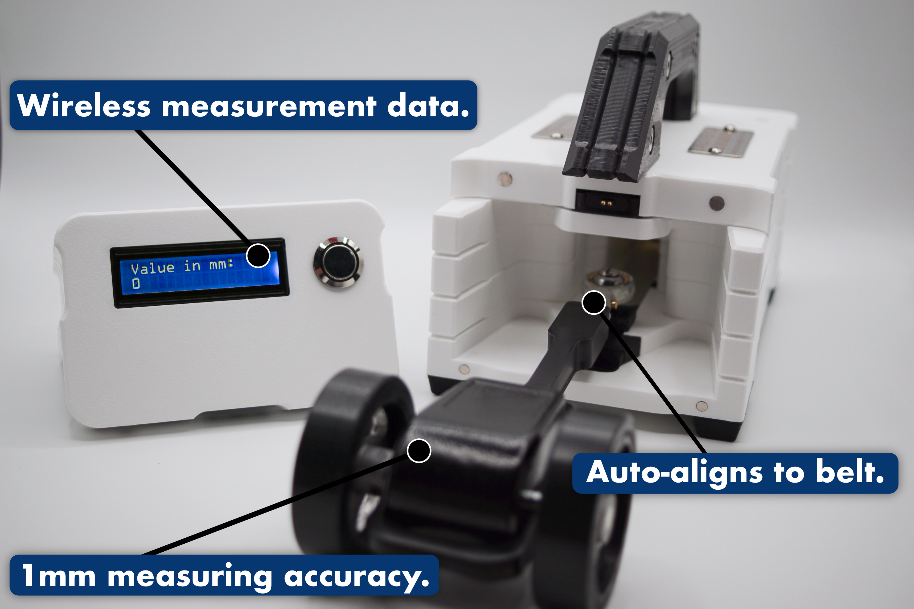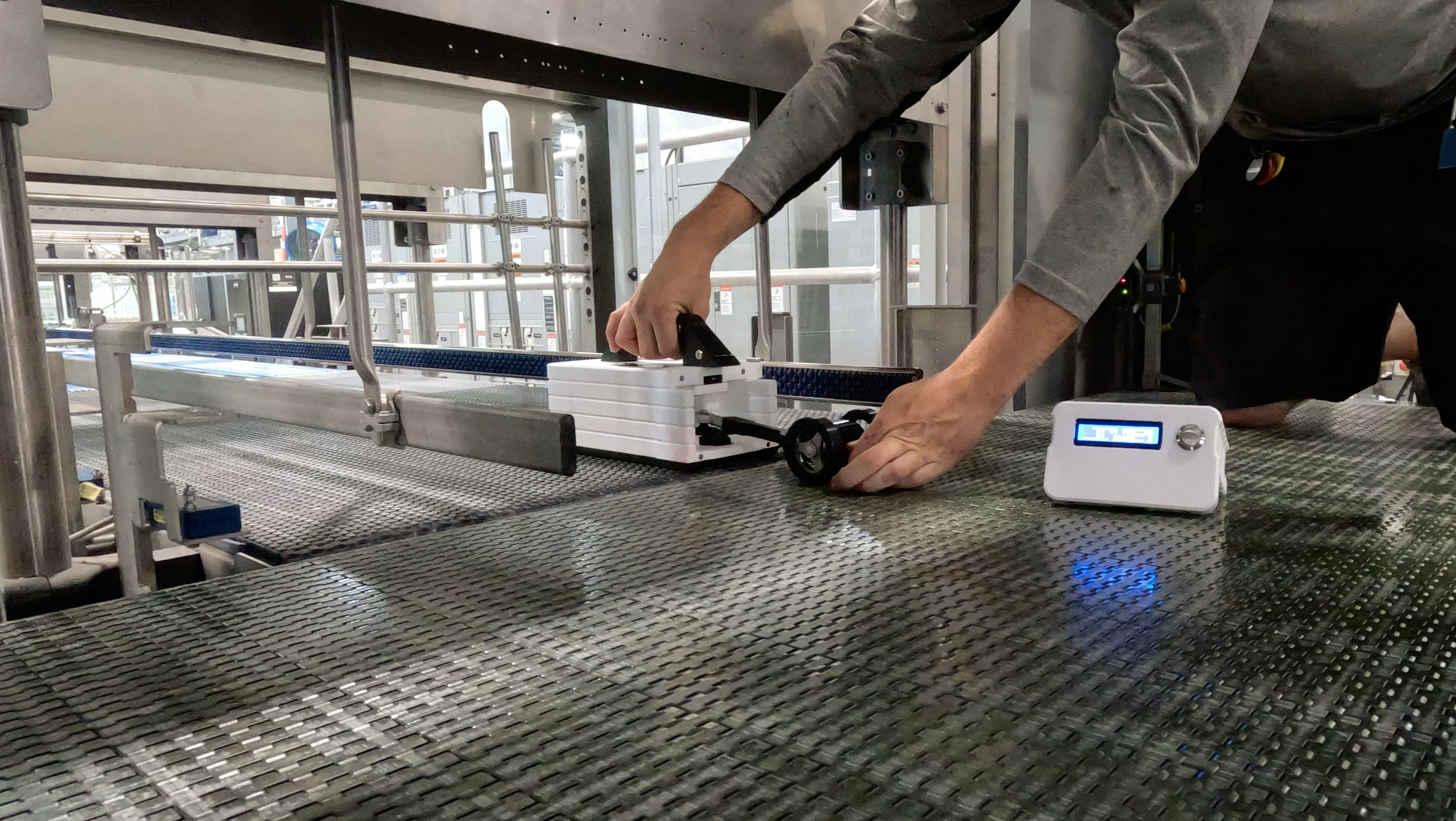 One person operation, no repeat validation steps needed, no back and forth walking from HMI to conveyor belt. Deploy, measure, and put away.